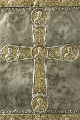 Questa parte nel suo complesso è totalmente opera originaria bizantina. In un disegno tratto dall'inventario del 1816-20 (Il Tesoro 1986) risulta che attorno alla croce vi erano altri 4 medaglioni circolari, oggi non più presenti, e che San Basilio non si trovava in posizione centrale. Questa parte ha quindi subito delle modifiche dopo quella data