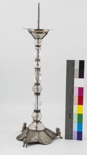 Costituisce il pendant di un altro candeliere analogo per forma e dimensioni (Tesoro 28)