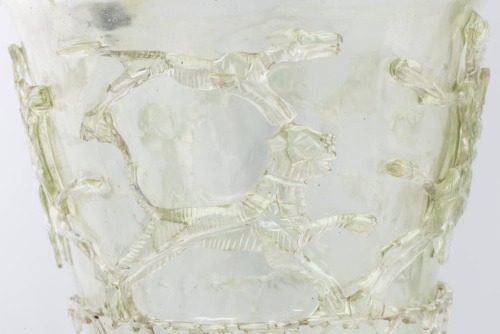 Appartiene ad un limitato gruppo di oggetti vitrei di lusso chiamati "diatreta", caratterizzati da una raffinata decorazione ottenuta con l' intaglio di un blocco di vetro, generalmente di strati di colore diverso. La loro massima diffusione è rilevabile nel IV secolo. Non è possibile stabilire l'ambito produttivo del manufatto del Tesoro, per cui lo studio dell'Hahnloser (1971) propone una datazione più avanzata per lo spessore del vetro e lo stile della raffigurazione