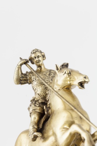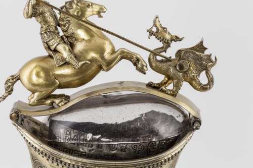 E' una delle reliquie portate dal Doge Enrico Dandolo a Venezia nel 1204 con la sua custodia interna. Nella revisione del Tesoro del 1325 essa era già dotata del suo reliquiario attuale. L'insieme di San Giorgio a cavallo posto alla sommità risulta un lavoro più tardo, collocabile nel XVI secolo