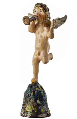 su una base di cartone, l'intelaiatura interna in metallo è coperta di cartapesta modellata, dipinta e verniciata