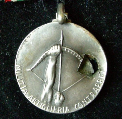decorazione raffigurante un arco puntato verso il cielo al recto. Al verso viene mostrata parte di un aerofono, un apparecchio che serviva a captare il rumore dei motori degli aerei in avvicinamento, consentendo di preavvertire sia le città verso i quali gli aerei erano presumibilmente diretti (che provvedevano mediante il suono delle sirene di allarme a far scendere la popolazione nei rifugi), sia gli aeroporti in cui stazionavano gli aerei da caccia e le batterie antiaeree.