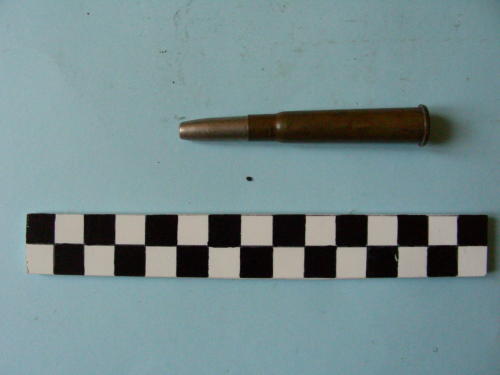 Di forma cilindrica, con fondello e restringimento all'apice del bossolo e proiettile a tronco di cono forato.