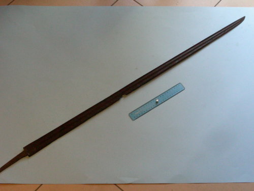 Dritta. Due sgusci su entrambi i lati fino alla punta al dorso. Conserva il codolo, piegato per l'impugnatura francese.