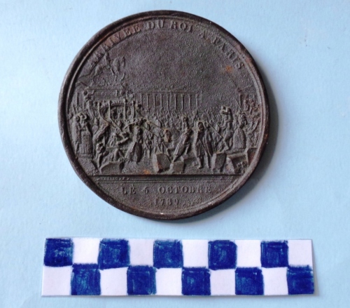 Di forma circolare. Sul recto, al centro, in rilievo la raffigurazione dell'arrivo a Parigi, in Piazza Luigi XV, di re Luigi XVI, in carrozza con la sua famiglia, attorniato dalla popolazione. Iscrizioni lungo la corona ed in esergo. Sul verso, al centro, in rilievo scena dell'assedio della Bastiglia. In primo piano gruppo di popolani dietro le barricate nell'atto di far fuoco verso la prigione. Iscrizioni lungo la corona ed in esergo.