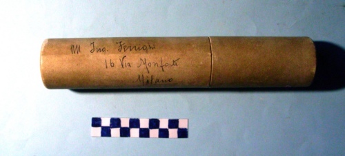Di forma cilindrica con tappo ad incastro ad un terzo dell'altezza.