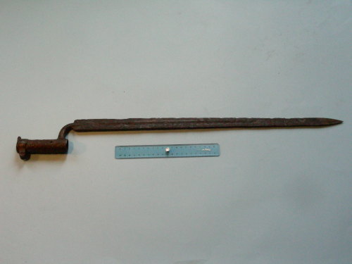 A manicotto; lama dritta, sciabola ad un filo con sguscio centrale su entrambi i lati per due terzi. Punta simmetrica al centro. Spacco obliquo.