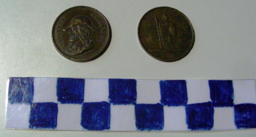 Di forma circolare. Sul recto busto accollato a sinistra, in rilievo, di Garibaldi con cappello floscio e piume. Iscrizione lungo la corona. Sul verso, figura allegorica femminile rappresentante la dea Minerva con elmo, lancia e scudo sabaudo.