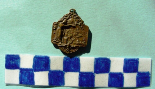 Di forma rettangolare con 2 semicerchi sui lati lunghi inferiore e superiore. Sul dritto, sul semicerchio superiore decorazioni floreali e stella raggiante. Al centro da sinistra Italia turrita a figura intera con braccio proteso sulla veduta del porto di Tripoli. Sul semicerchio inferiore aquila coronata a ad ali spiegate. Sul verso, sul semicerchio superiore decorazioni a motivi floreali. Al centro scritta in ovale. Sul semicerchio inferiore scudo sabaudo coronato.