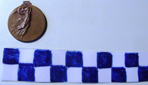 Di forma circolare. Sul recto, al centro, in rilievo figura allegorica femminile della Vittoria che regge dietro al capo una corona d'alloro. Sul verso, un cartiglio con sottostante albero d'alloro ed iscrizione.