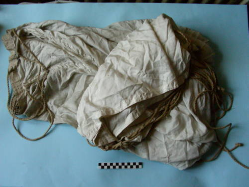 Cupola bianca con foro superiore circolare al centro, a nove spicchi con cinque corde cucite in passanti per l'intera lunghezza della cupola a formare dieci attacchi legati ciascuno ad un'ulteriore corda.