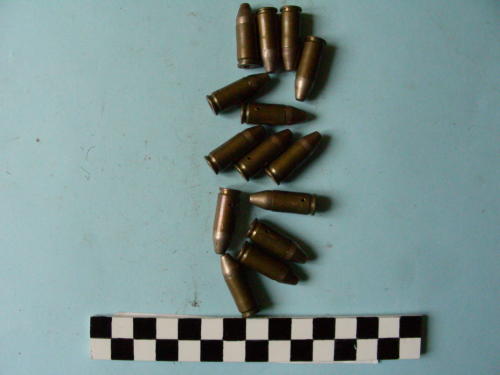 Bossolo di forma cilindrica con fondello; proiettile a tronco di cono.