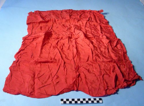 rettangolare, di colore rosso, orli cuciti sui due lati lunghi .