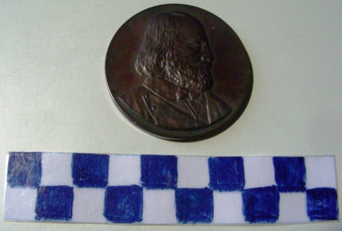 Di forma circolare. Sul recto, al centro, in rilievo busto accollato a destra di Garibaldi. Sul verso, iscrizioni.