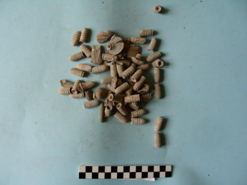 Proiettili di forma cilindrica, 42 dei quali con punta arrotondata e scanalature sul corpo; 6 a tronco di cono; 2 con punta arrotondata, di forma oblunga; 18 schiacciati, di forma irregolare.