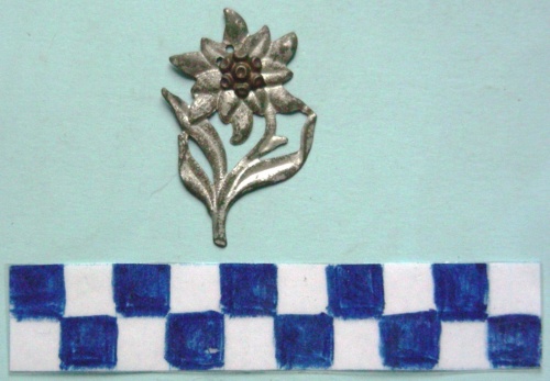 A forma di stella alpina, volta a sinistra, con stami di metallo diverso.