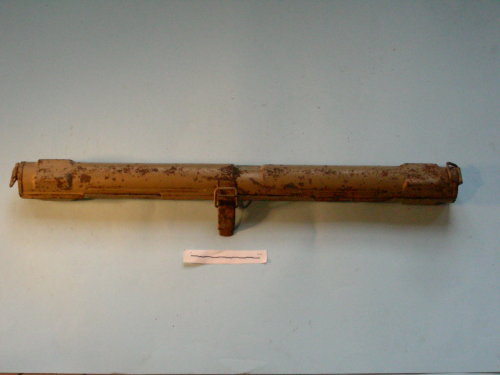 Due magliette porta cinghia alle estremità; chiusura ad aggancio con leva. Verniciatura color kaki.