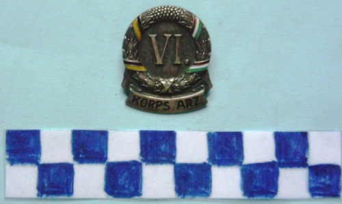 Di forma circolare con serto di alloro e di quercia con i colori giallo e nero, rosso bianco e verde dell'Austria-Ungheria, nella parte inferiore un cartigkio con iscrizione. ulteriore iscrizione al centro. Sul verso spilla di fissaggio.