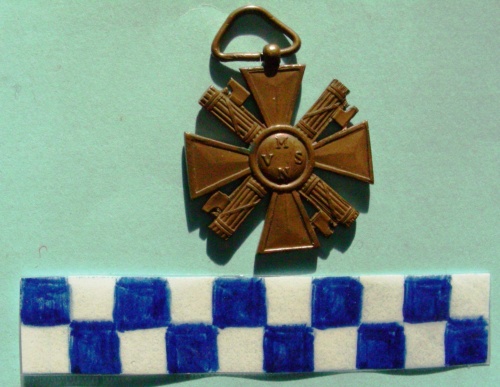 A forma di croce patente o croce di Mantova, con bomba al centro recante iscrizioni sul dritto e sul verso. Quattro fasci littori alternati ai bracci e nascenti dalla bomba. maglietta ed anello triangolare sul braccio superiore.