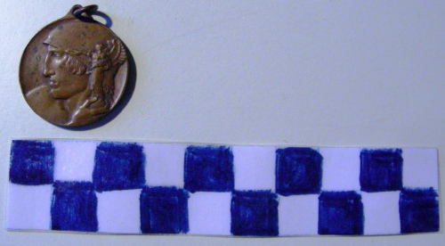 Di forma circolare. Sul recto, al centro, in rilievo busto accollato a sinistra di soldato elmato a sinistra che regge nella destra la Vittoria alata. Sul verso, iscrizione centrale sotto elmo Adrian e fascio littorio posto in orizzontale. Ulteriore iscrizione lungo la corona a destra. Anello all'appiccagnolo.