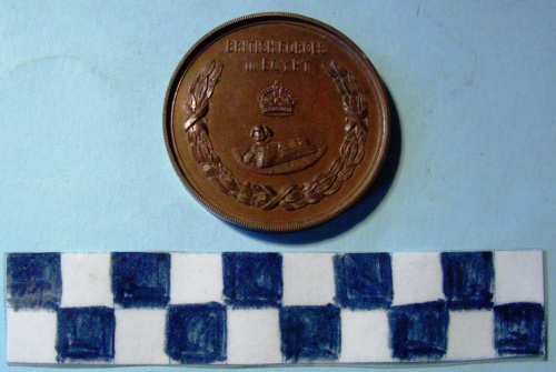 Di forma circolare. Sul recto, al centro, in rilievo la raffigurazione, entro serto d'alloro legato da nastri, della sfinge di Giza sormontata dalla corona imperiale britannica . Iscrizione sulla parte superiore. Sul verso iscrizione con sottostante serto d'alloro legato da nastro.
