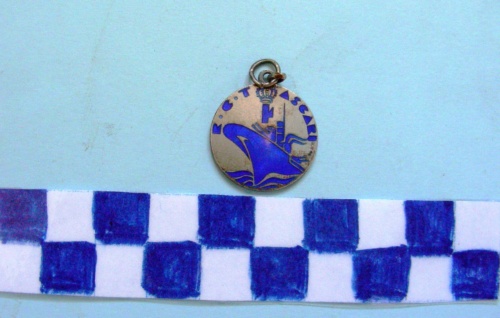 Disco argentato. Sul dritto prua di colore blu di una nave da guerra che solca il mare verso sinistra con fumo ed onde, sulla parte superiore della corona una iscrizione divisa da corona reale e fascio littorio. Sul verso, di color argento, in blu, un ascaro di profilo con una lancia verticale tra le mani, sulla sinistra sono raffigurate quattro stelle a cinque punte di colore blu. Sono presenti una maglietta ed anello di fissaggio