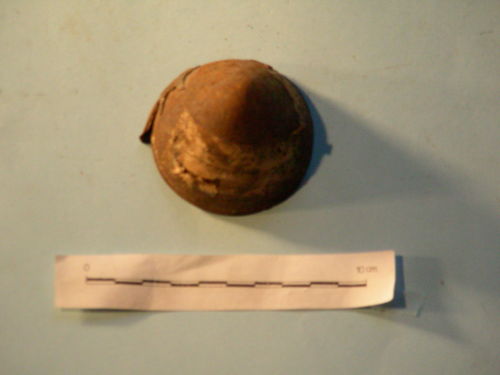 Conserva tracce di verniciatura originale del corpo principale della granata sul margine inferiore.