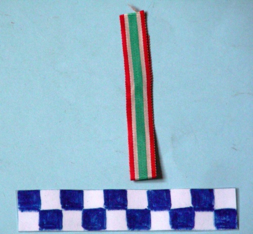 Composto da due bande rosse ai lati, due bianche ed una verde centrale più larga.