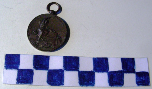 Di forma circolare. Sul recto, al centro, in rilievo, figura allegorica femminile seduta rappresentante la Vittoria che indica con la destra alzata una stella radiante a cinque punte e con la sinistra abbassata regge una corona d'alloro. Ai piedi i simboli delle città di Mantova e Trento su un trionfo di bandiere. Iscrizioni lungo la corona. Sul verso, al centro iscrizione.