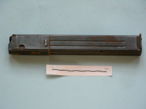 A parallelepipedo, con scanalature laterali; meccanismo a molla ed incastro per il fucile mitragliatore.