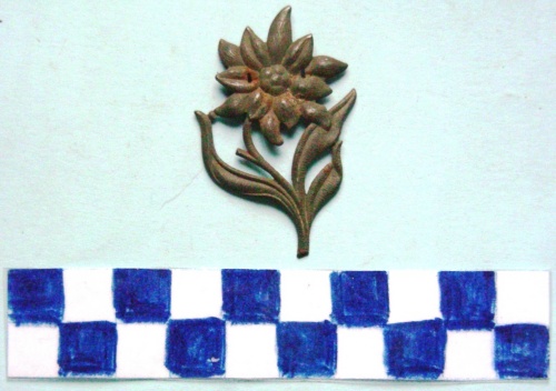 A forma di stella alpina, volta a destra, con stami di metallo diverso.