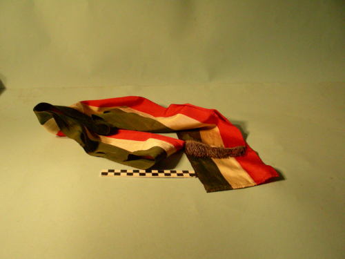 Tricolore, in un unico pezzo, canottiglia dorata applicata ad un lato corto.
