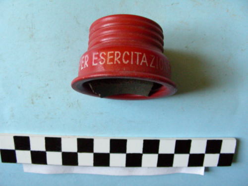 Corpo a tronco di cono, con cilindro filettato all'apice. Verniciatura colore rosso.