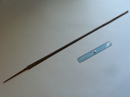 Dritta; a due fili, con sezione a losanga. Conserva il codolo dritto.