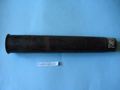 A forma cilindrica, con fondello e innesco, e con restringimento all'apice e otto scanalature sul restringimento.