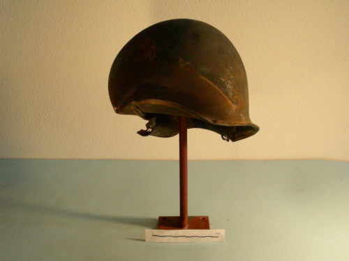 Calotta leggermente estroflessa con gancio per il sottogola all'interno; lamina di rivestimento al margine inferiore.