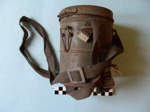 Di forma cilindrica; coperchio basculante con maglietta e sistema d'aggancio. Tre magliette disposte a triangolo per le cinghie di aggancio, presenti. All'interno del coperchio, struttura a due fili metallici convessi incrociati.