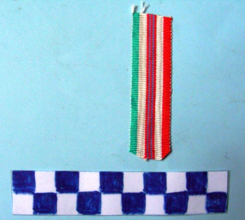 Composto da una banda verde, una bianca, tre piccole bande rosse intervallate da due piccole bande blu, una banda bianca ed una rossa.