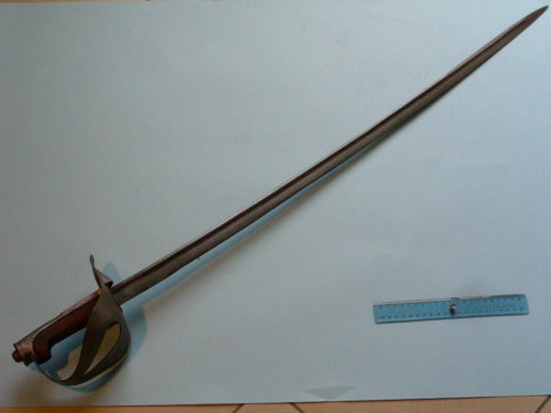 Lama leggermente curva ad un filo; senza sgusciature; dorso rinforzato fin quasi alla punta, simmetrica al centro. Fornimento tipico con guardia e due elsi. Conchiglia per il pollice sul ramo di parata. Cappetta lunga, piatta al vertice, con parte alta zigrinata e piatta verso la guardia. Bottone a calotta sferica, avvitato al codolo. Impugnatura liscia. Rivestimento al tallone.
