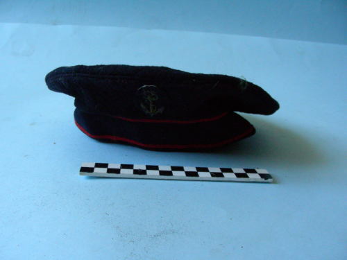 Di forma circolare, con fascia bordata di rosso e foro centrale sulla sommità. Fregio frontale.