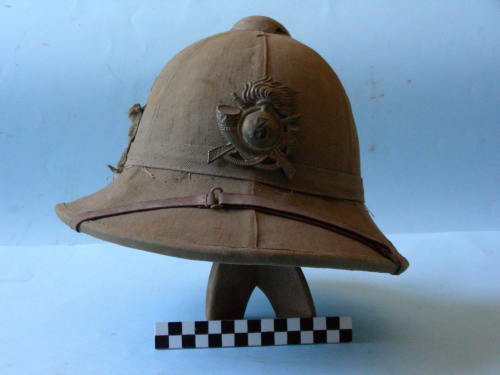 Calotta a sei sezioni sormontata da calottino in lamiera con tre fori di aerazione; tesa larga; due fori di aerazione laterale. Fascia posta sopra la tesa, fissata attraverso un passante. Taschino in posizione laterale. Di color kaki, rivestimento interno color verde. Sottogola a cinturino regolabile, posizionato sulla visiera, e fissato all'interno mediante gancetti. Fregio in posizione frontale.