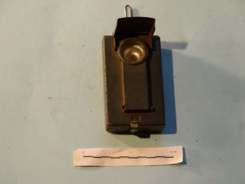 A forma di doppio parallelepipedo; con sportello basculante a protezione della lente, chiusura a gancio e due levette per il cambio colore (rosso e blu). Gancio per il trasporto in posizione posteriore. Vite zigrinata in posizione superiore. Verniciatura color grigioverde.