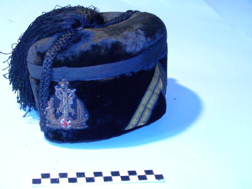 Calotta ovoidale, bombato, con leggera curvatura al centro del cupolino, in senso longitudinale; risvolto bordato. Fiocco nero sull'imperiale e doppio cordone nero intrecciato a motivo di nodo savoia che corre sul cupolino e scende sino alla base a delimitare tutto il lato destro. Fregio in posizione frontale, gradi di Tenente sul lato sinistro. Interno foderato, di colore bianco con nastrino chiuso a fiocco sulla fascia interna.