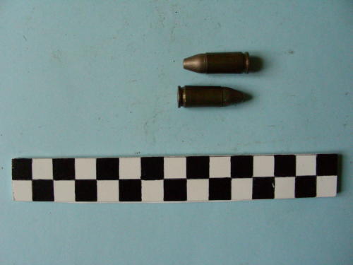 Bossolo di forma cilindrica con fondello; proiettile a tronco di cono.