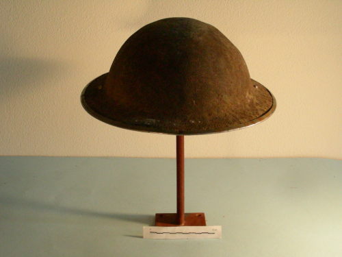 Calotta a "bacinella" con due rivetti; lamina di rivestimento al margine inferiore e foro sulla sommità.