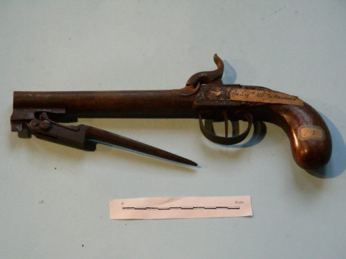 A luminello, sistema "box-lock", con baionetta a scatto posta sotto la canna. Canna avvitata alla culatta. Incisioni a motivi floreali su calcio e culatta. Presente il ponticello. Scudetto inserito nella parte superiore del calcio.