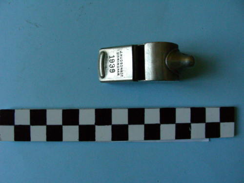 Corpo principale cilindrico con sporgenza con foro passante per la cordellina di trasporto e imboccatura. Sfera libera chiusa all'interno.
