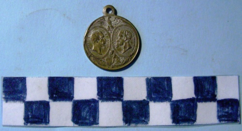 Di forma circolare. Sul recto entro ovali sormontati da acquila abbassata busti accollati di Napoleone III a destra e di Vittorio Emanuele II a sinistra.Nella parte sottostante leone reggente stemma Savoia su bandiere decussate. Iscrizioni lungo gli ovali. Sul verso, al centro, iscrizione circondata da rami d'alloro e di quercia legati da nastro. Ulteriore iscrizione lungo la corona.