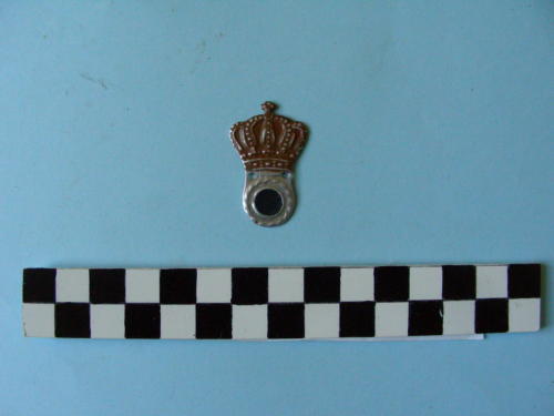 Cerchio di colore nero in corona d'alloro sormontato da corona di color marrone con croce sulla sommità.