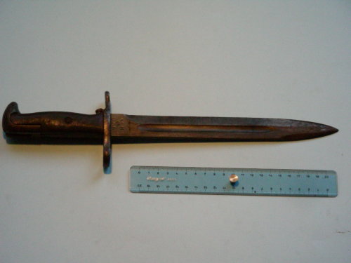 Lama dritta ad un filo e controfilo alla punta simmetrica al centro. Guardia a croce con anello. Sistema di aggancio alla crociera. Impugnatura a guancette zigrinate con singola vite di fissaggio.